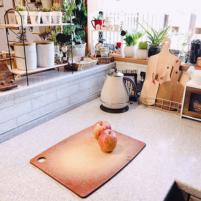 ARIさんが愛用されていたのは、エピキュリアンのカッティングボード。天然木の繊維を合成した素材で、耐久性に優れていて軽いのが特徴です。ぬくもりのある色味で生活感を感じさせないデザインは、ARIさん宅のカフェ風なキッチンにマッチしています。