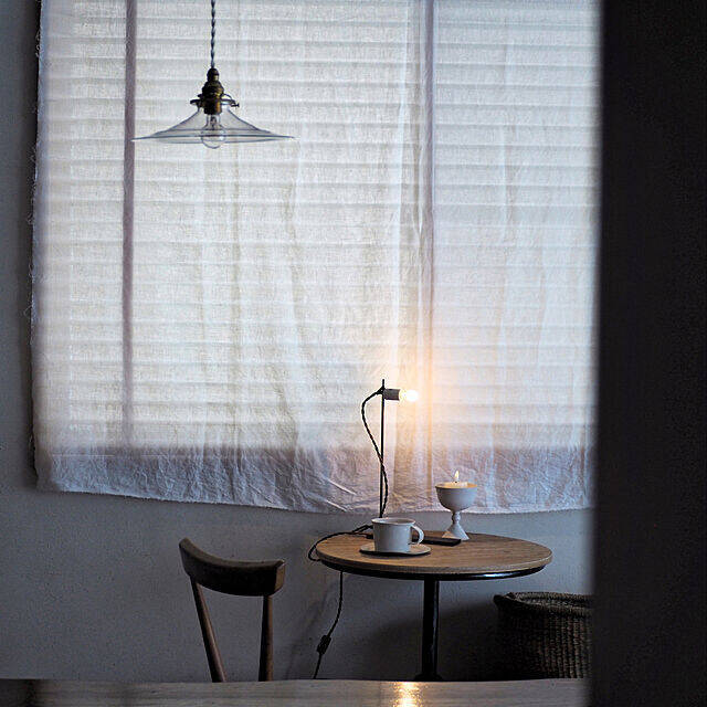 naoonさんは、窓辺に置いたシンプルなカフェテーブルでコーヒーを楽しんでいます。テーブルの上のスタンドライトとキャンドルが、ほっとする温かい雰囲気を演出していますね。美しく整えられた、まるで雑誌の1ページのような素敵なコーヒースペースです♪