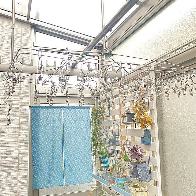「オールステンレス角ハンガー」を長年愛用しているというayaさん。さびにくく、耐久性にすぐれたステンレス。機能的なだけでなくシンプルでスタイリッシュな見た目もポイントです。洗濯ハンガーを出しておいても、たくさんの植物が飾られた、インナーテラスの雰囲気がそこなわれませんね。