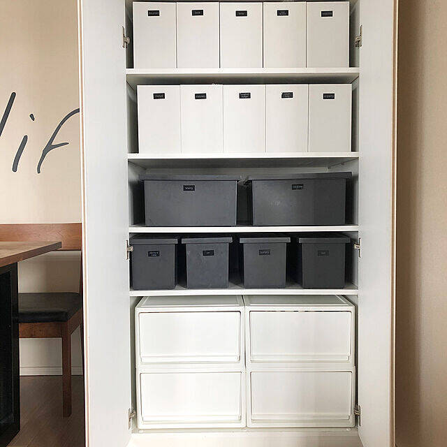 12280311minaさんの、書類や取扱説明書を収納しているクローゼットです。ファイルボックスと引き出しケースなどを使って、仕分けながら入れられるようにしてありますね。自然と整理しながら、キレイに使うことができそうです。