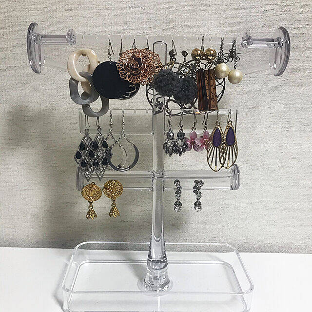 ニトリのアクセサリースタンドがお気に入りという、kita-loveさん。クリアでシンプルなデザインのアクセサリースタンドは、ピアスを掛けるくぼみがたくさんあり収納力バツグン。華やかなアクセサリーが美しく整理されていますね。