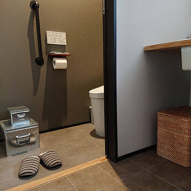 トイレの収納として、トタンボックスを愛用されているmamaさん。大小サイズがあるので、このように2つ重ねて置くと、バランスよく絵になりますね。蓋付きなので、どんな場所でも衛生的に中身を保管できるのもうれしいポイントです。トイレにクールなアクセントももたらしてくれます。
