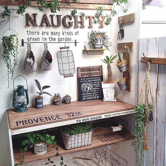 プランターや植木鉢で育てる植物は、お部屋のインテリアと同じように置き方や置き場所にもこだわると、スタイリッシュに映えます。ユーザーさんはいろいろなタイプの棚をDIYされているので、見せ方のヒントになりそうです。棚への並べ方や雑貨との組み合わせ方などもぜひマネしてみてください。
