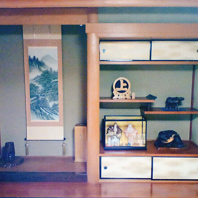 こちらのユーザーさんは、琉球畳を敷いたお部屋に木彫りの熊をディスプレイされています。棚ではなく、花台や鉢置きを活用し、さらにグリーンも一緒に置かれた空間はモダンさがあるのがいいですね。そのさりげない見せ方にユーザーさんのセンスが感じられます。