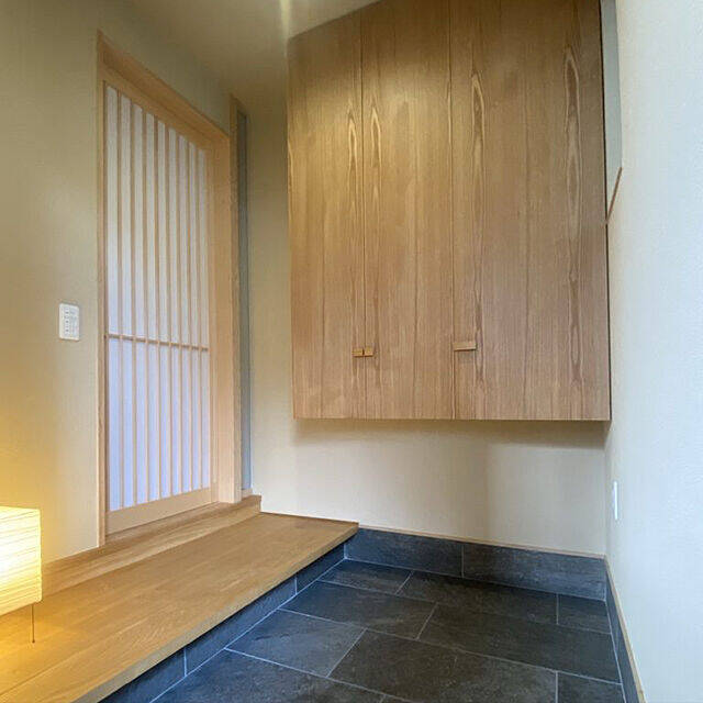 お子さんと一緒に暮らす新居が完成したという、yumiP_homeさん。木のある暮らしをイメージした、旅館のような玄関となっています。無垢の床になっており、おうちの中に入ると木のいい香りがただようそうですよ。