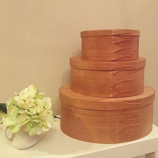 それ自体が芸術作品のようなシェーカーボックスは、ただ並べて置くだけでも心つかむ存在感があります。akko_no_ouchiさんのように、ディスプレイ棚に他のオブジェなどと一緒に飾れば、凛とした佇まいに引き込まれます。大きさの違うものを2つ以上取り入れて、組み合わせを楽しむのも素敵です。
