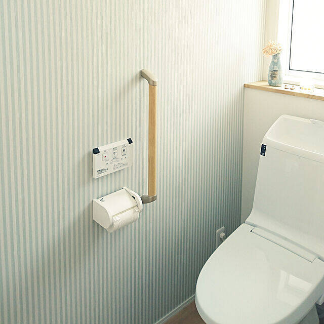 haru-yuaさんは、トイレの壁にストライプ柄をチョイス。シンプルながらもアクセントになっていて、さわやかで清潔感のある空間です。窓辺に飾ったあじさいのドライフラワーが、よりナチュラルさをアップさせています!水色に挑戦してみたい方が、取り入れやすいアイデアなのではないでしょうか。