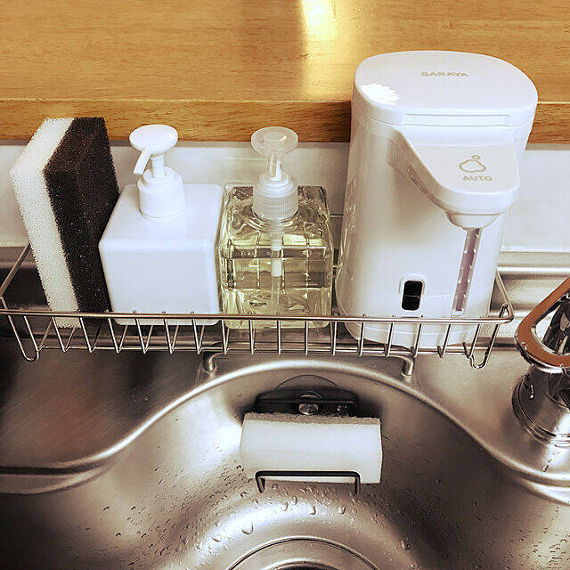 mucilindaさんはキッチンで「PET詰替ボトル・泡タイプ・400ml」を使用。同じサイズの「PET詰替ボトル」と一緒に、シンクのラックに収納されています。用途に合わせて、2つのタイプを組み合わせられるのがいいですね。選ばれたのはクリアカラー。中の残量が見えるのがお気に入りだそうですよ。