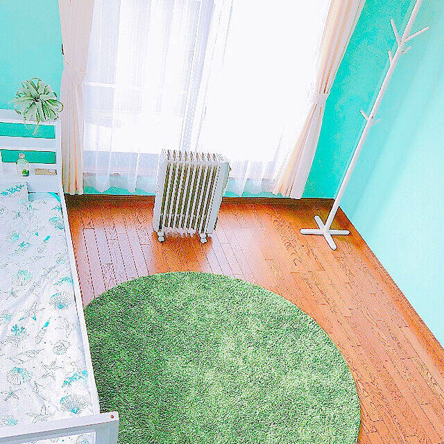 hoshimamaさんはニトリのポールハンガーを子ども部屋に設置しています。お子さんの制服かけとして使用しているそうですよ。真っ白い白樺の木を思わせるポールハンガーはまるでオブジェですね。爽やかなスカイブルーのクロスとも相性抜群です。子ども部屋にシンプルなアクセントを加えていますね。