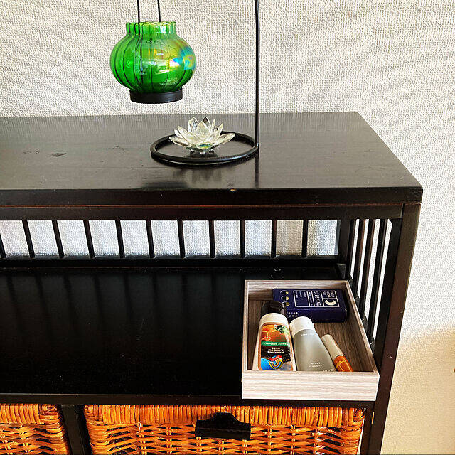 aiaiさんは、寝る前に使うハンドクリームやリップクリームをセリアのトレーにまとめています。トレーを置いて定位置を決めると、すっきり整いますね。シンプル&ナチュラルなトレーは、どんなお部屋にもマッチしてくれそうです。