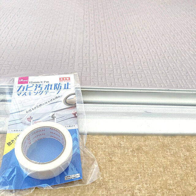 こちらのユーザーさんは、汚れやすい浴室の入り口にマスキングテープを貼られています。ホワイトのマスキングテープは見た目にも清潔感があるのが◎。普通のマスキングテープよりも幅があるので貼りやすいと感じられたそうですよ。