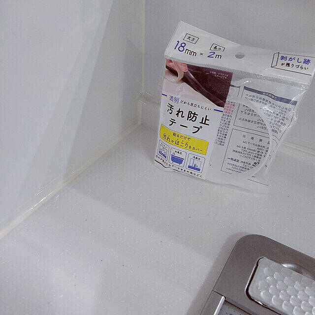 キッチンのすき間を埋めているパッキン。気が付くと、黄ばんだり汚れたりしている場所です。maruさんは、そんなパッキンに、セリアの「汚れ防止テープ」を貼られています。程よく厚みがある透明なビニール製で、目立たせずにテープを貼れますね。水回りでも気兼ねなく使えることもうれしいポイントです◎