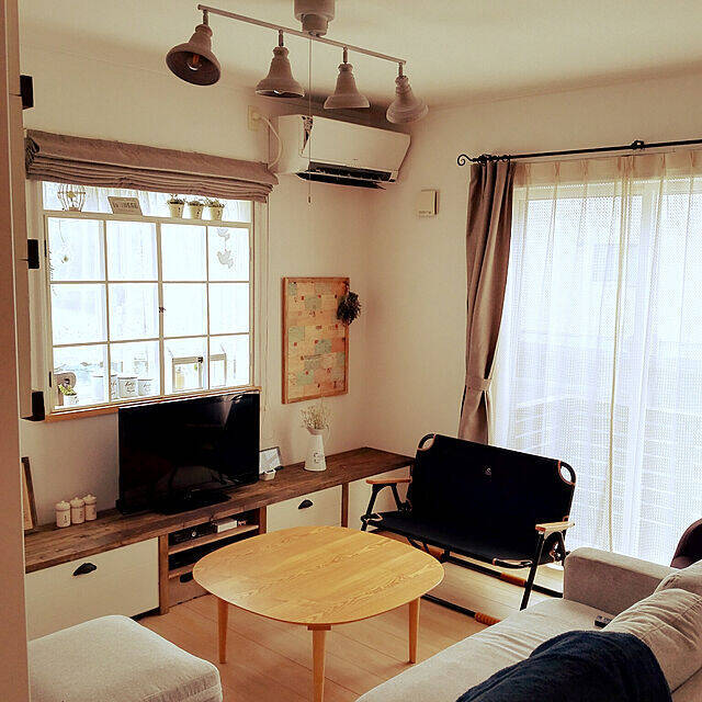 リビングに、ソファとアウトドアベンチを組み合わせて置いているのは、kotorinさんです。家族が座るのにソファだけでは狭かったため、アウトドアベンチを迎えたそう。冬にはこたつを出すので、収納できるチェアが欲しかったことも理由だそうです。大家族の方や模様替え時にも便利で、◎ですね。