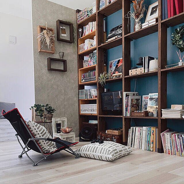 Miiさん宅では、キャプテンスタッグのローチェアを、お子さんがゲーム用のチェアとして活用しています。テレビと目線が同じ高さになるので、ロースタイルのお部屋でゲームやテレビを見るのには、ピッタリ。背もたれつきで疲れにくいのも、愛用ポイントですね。落ち着いたカラーで、インテリアともよく馴染んでいます。