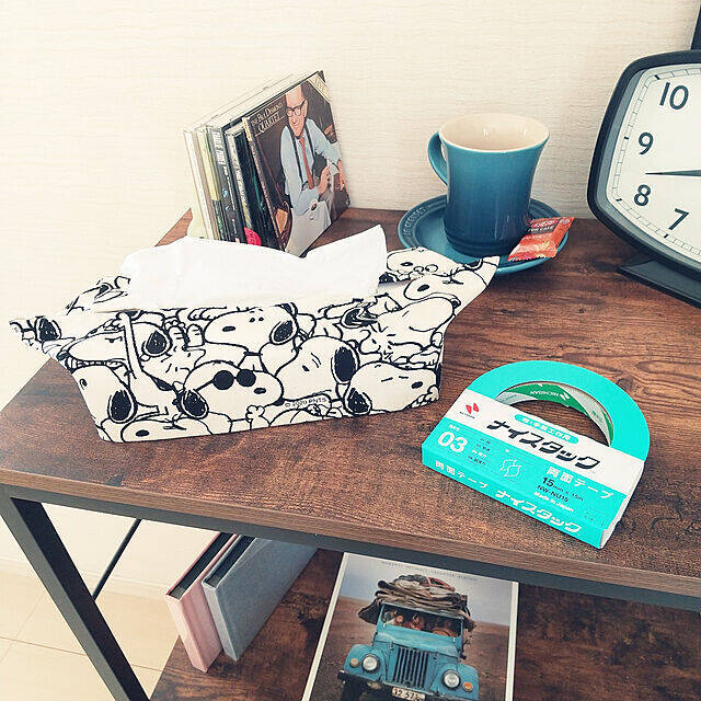 針と糸を使わず、布用両面テープを活用してオリジナルのティッシュボックスカバーをハンドメイドされたmeiさん。初めてカバーを製作されたそうですが、お気に入りの生地で大満足の仕上がりになったんだそう♪モノトーンのキャラクターが、お部屋の雰囲気にぴったりですね。