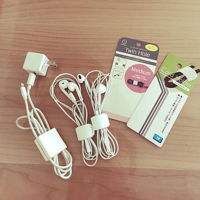 100均で購入されたという「コードホルダー」は、色合いが可愛いですね。小さめサイズなのに加えて見た目がおしゃれなので、お出かけのときなどに持ち歩くのにもぴったり。さりげなく置いてあってもインテリアの邪魔をしない、そんなコードホルダーです。