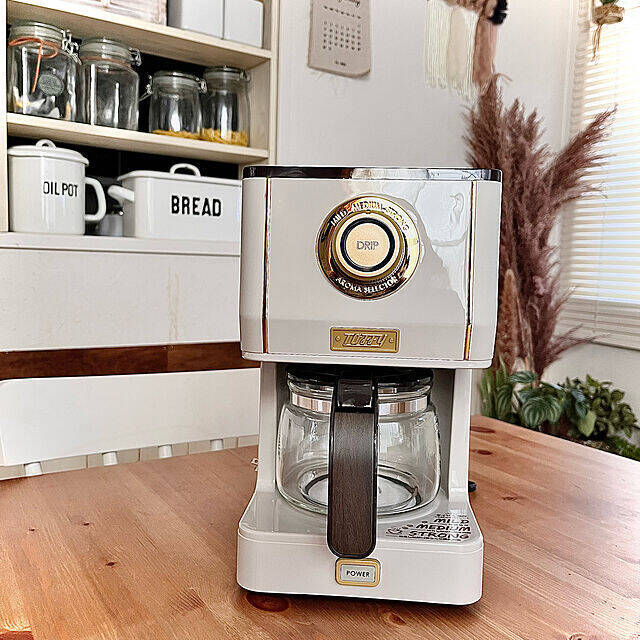 YU-KAさんが紹介されいてたのは、Toffyの「アロマドリップコーヒーメーカー」でした。モダンさの中にレトロさも感じるデザインがなんとも可愛らしいですね。ニュアンスカラーのグレージュも、YU-KAさん宅のカフェ風インテリアにマッチしています。