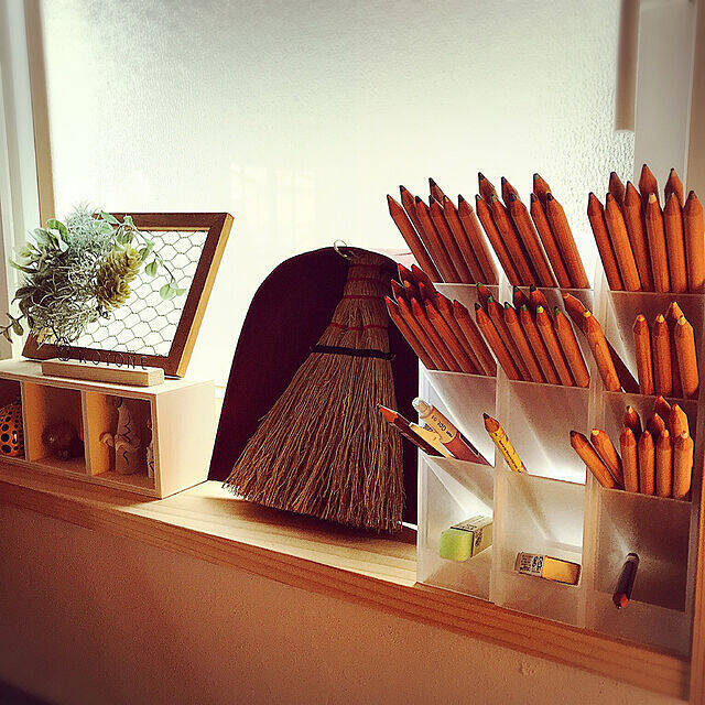 セリアの「タワーペンスタンド」に、色鉛筆などを収納しているsearch1132さん。こちらのスタンドはペンを斜めに収納できるので、使いたいものが一目で分かり、取り出しやすさも抜群です。省スペースでたくさんのペンを収納でき、デスク周りが整いますね!