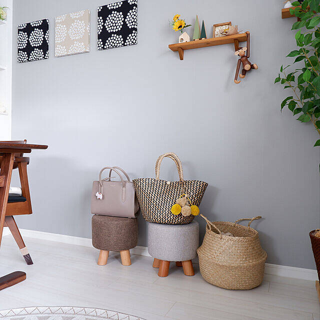 こちらのユーザーさんは、リビングにスツールを並べて、その上にカバンを置いています。カバン自体の色合いや素材感が周囲と馴染んでいて、カバンもインテリアの一部のようですね。スツールの丸みをおびたかわいいフォルムが、カバンの美しさをさらに引き立てています。