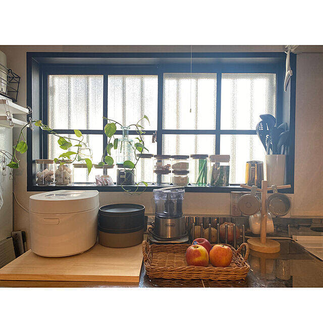 pippiさんは、キッチンの窓に黒いマスキングテープを貼り、格子窓風のDIYをされています。太めのラインがかっこよく、窓辺の印象をキリリと引き締めていますね。マスキングテープを使えば、現状回復も楽々です。