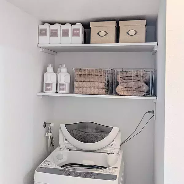 「出し入れラクラクで美しい♡ランドリーで見せる収納を」の画像