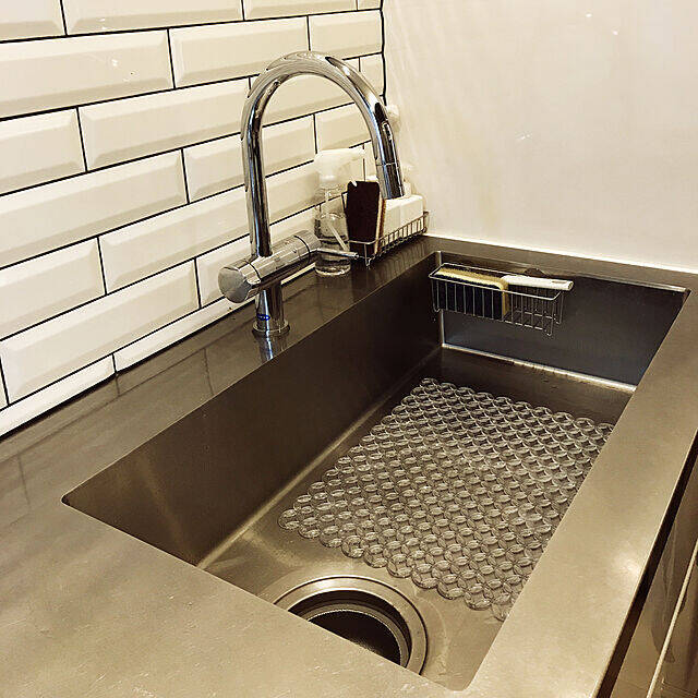sunny-casablancaさんはキッチンにシンクマットを購入しました。クッション性の高いマットを敷くことで、シンクや食器に傷がつくのを防ぐだけでなく、水はねを軽減してくれますよ。マットは目地ブラシを使うと楽にお手入れできるそうです。