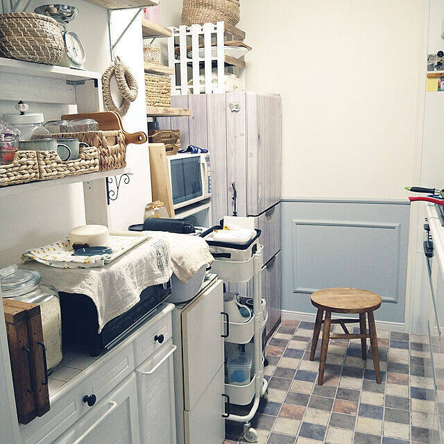 IKEAのベクヴェーム ステップスツールは、シンプルなデザインで幅広いインテリアに合わせやすい点が魅力です。seiko5kidsさんは、DIYで明るいカラーにアレンジされています。元はナチュラルな色合いだったそうです。爽やかなブルーは、家具との相性もバッチリですね。