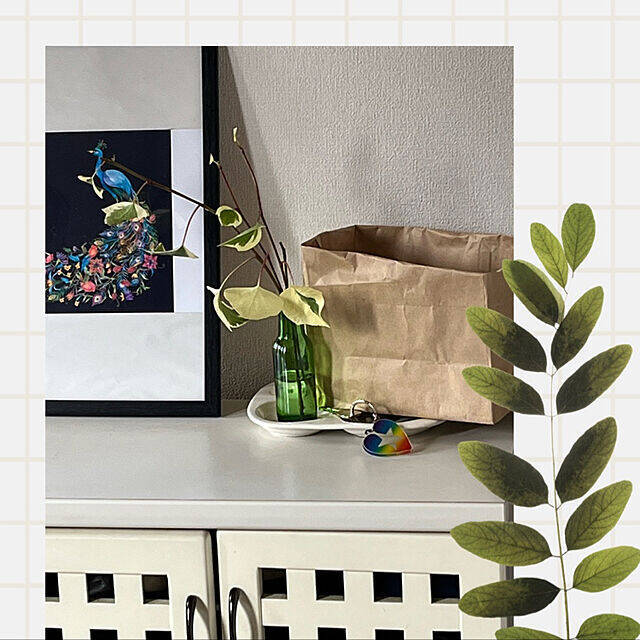 もともとはラックに入れていたマスクを、紙袋収納に変えているmiyakoさんの実例です。引き出しを開ける手間が省けたのはもちろん、たくさんのマスクもスッキリと収められるようになったのだとか。風合いの良い紙袋収納は、アーティスティックな棚にも良く似合います。