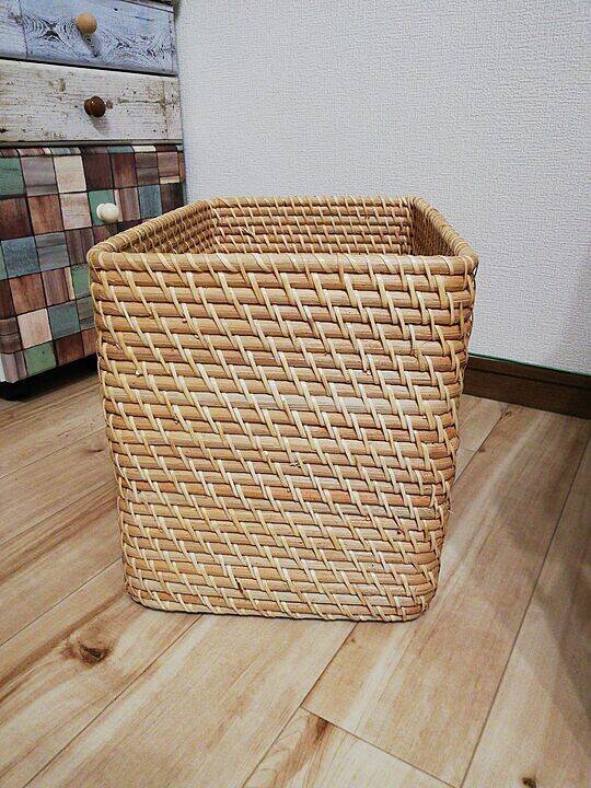 ITEM無印良品の重なるラタン長方形バスケット・特大PRICE3,990円(税込)SIZE外寸:約W36×D26×H31cm、内寸:約W34×D24×H19.5cmラタンの風合いの良さ、曲げやすさを活かした手編みの収納バスケットです。最大2段まで積み重ねができます。