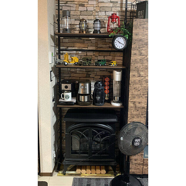 壁面を使いコーヒーグッズを上手に収納しているakipuさんです。akipuさんのように家電が数種類ある場合は、このように横に並べるとすっきりしていて気持ちがいいですね。ほかの棚には雑貨をならべているのもすてき。カフェに来たような気持ちでコーヒーを飲むことができそうです♪