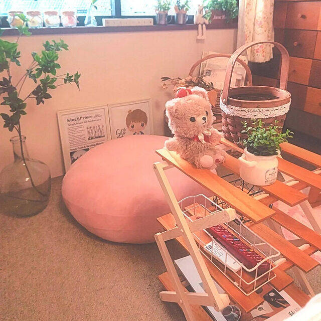 海外のインテリア家具のように仕上がった黒のサイドテーブルは、mii_home_39さんがDIYしたものです。脚の部分は波型のクッションで作って、天板はペール缶のフタなのだそう!手軽に買える意外なものを組み合わせインテリア家具に仕上げた、驚きのアイディアですね。