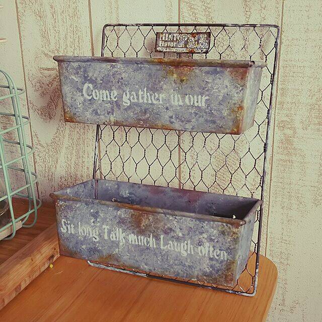 壁面にアンティーク風の雑貨をたくさんディスプレイしているユーザーさんです。年季の入ったアイテムのようなサビや色褪せがどれも素敵で、タイムスリップしたような錯覚に陥りますね。ラスティックスタイルならではのレトロな風情に憧れます。