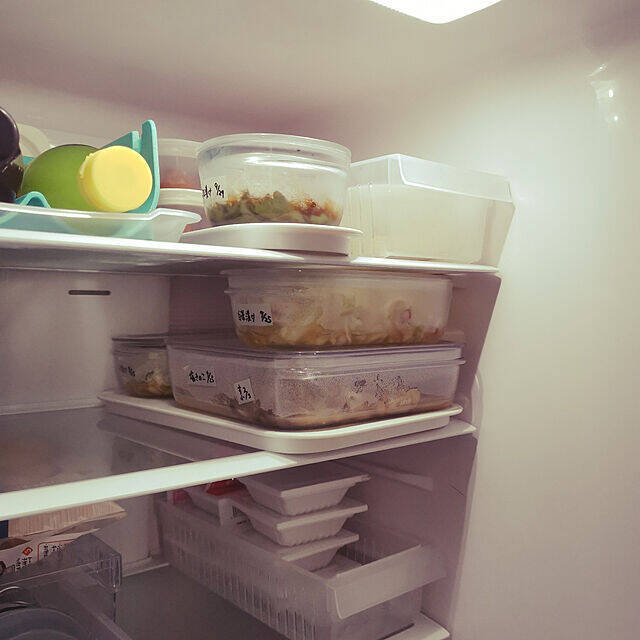 少し時間に余裕があるときに作り置きをしておくと、時間がないときはその料理を出すだけですみます。midomiさんはトレーとセットで売ってる保存容器をつかって、作り置きを保管されています。トレーごと食卓に出せるのが便利ですね。食卓にそのまま出せる保存容器は、お皿を決めて移し替える手間も省いてくれます。