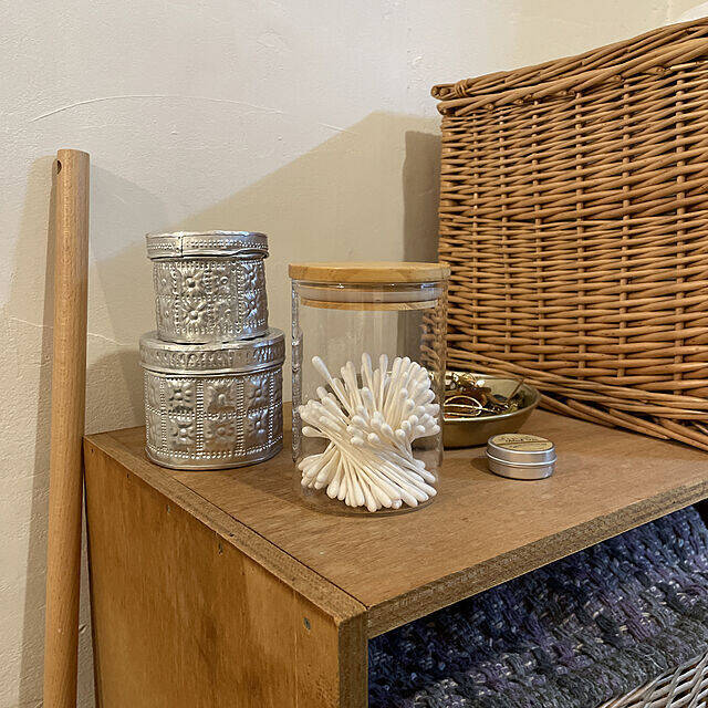 shijiminさんは、おばあ様からもらったという灰皿を綿棒入れに活用されています。現行品ではなかなか見ない四角い灰皿は、レトロな風合いも魅力ですね。蓋はご自身で手作りされたとのこと。インテリア性も機能性もばっちりの収納アイデアです。