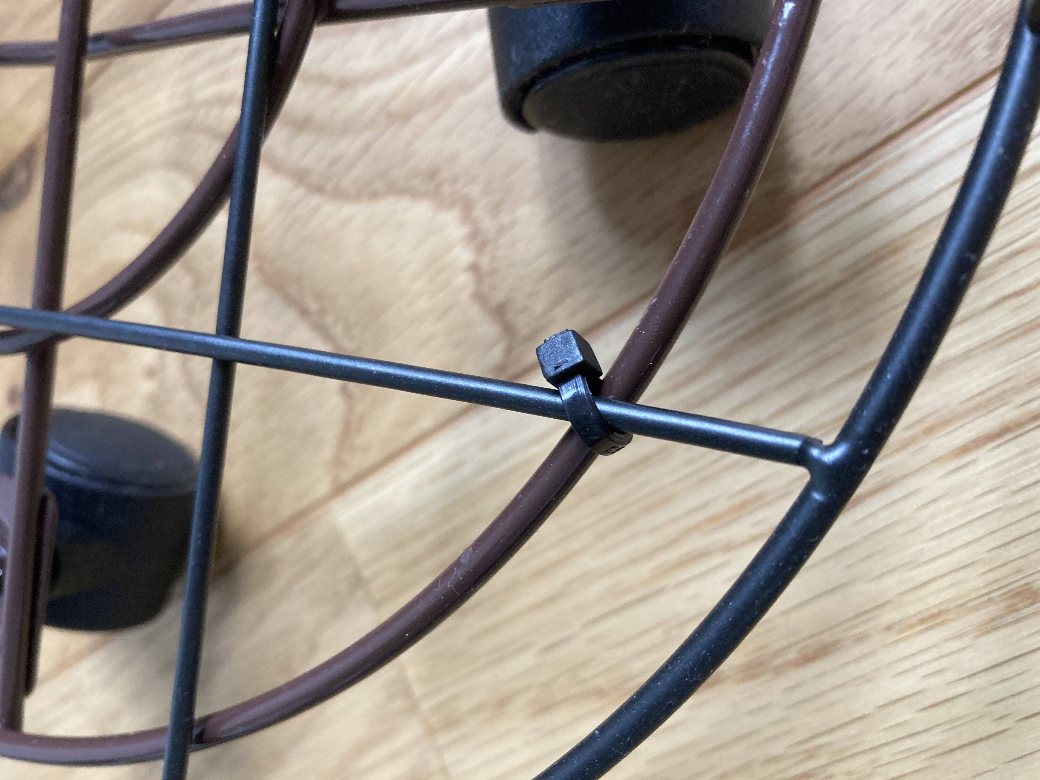 次に、サイドテーブルと花台キャスターの中心を合わせ、結束バンドでしっかり固定します。