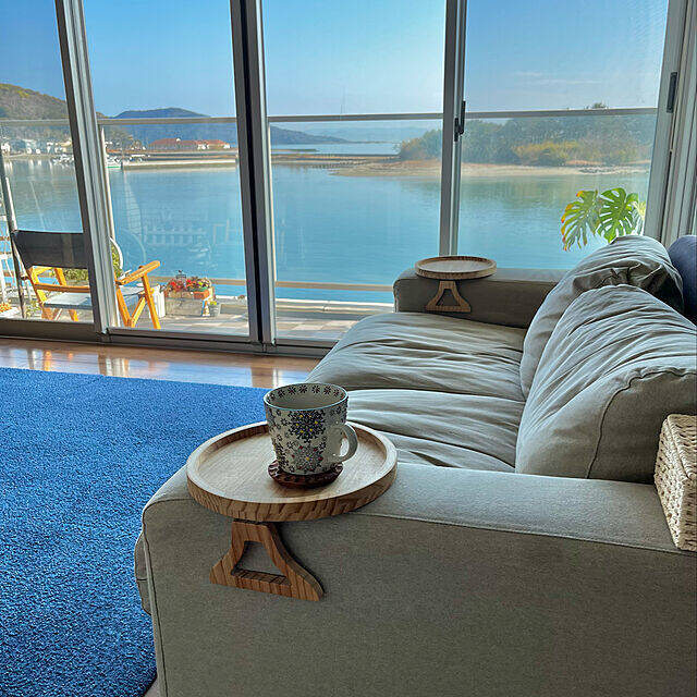 サイドテーブルが欲しいけれど、スペースを確保するのが難しい……。そんな方は、amさんのようにソファに取り付けられるタイプのサイドテーブルを選んでみてはいかがでしょうか。愛用されている彩華生活のアームレストテーブルは、脚を折りたたんでスリムにできるため、使わないときに収納しておくことも可能です。