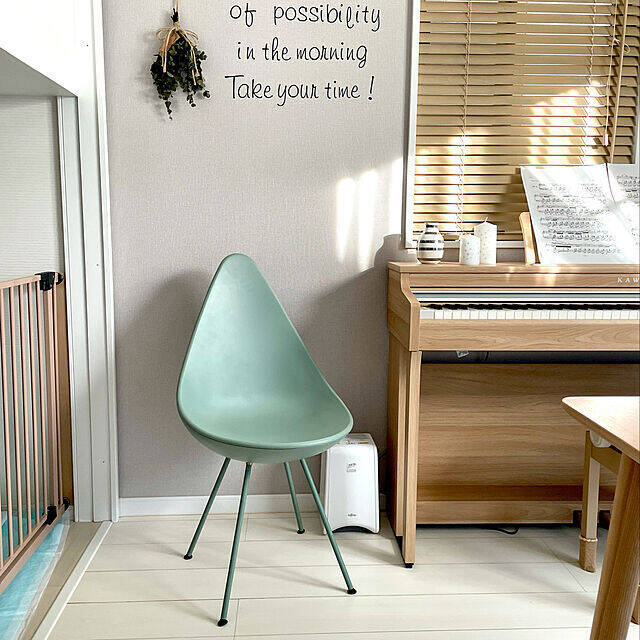 「フォルムも色も好きすぎる」と、おっしゃるユーザーさんがお使いなのは、くすみグリーンのドロップ型チェアです。雫のような形が印象的ですね。体にフィットして包み込むように設計されているので、座り心地も抜群。カラーは、他にホワイトやブラック、レッドなど全部で7色あります。