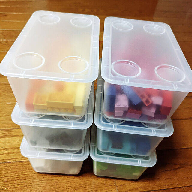 お子さんのおもちゃのざっくり収納にイケアのボックスを活用されていた、mtsuさんの実例です。半透明なので、お子さんがパッと見て中に何が入っているのかわかるのも良いですね!フタも開けやすいとのことで、すぐに遊べて、片付けも楽とコメントされています。