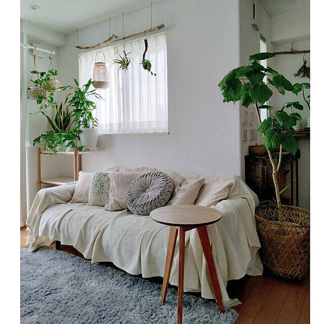 C型の土台にカーブした脚で、ソファの近くまで寄せることができるサイドテーブルを使われているという、rihiさん。飲み物も取りやすく、テーブルの脚が通路の邪魔にならないとのことです。ナチュラルなデザインが、北欧インテリアにぴったりですね。