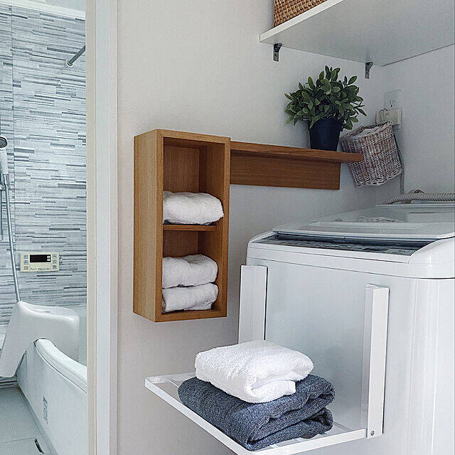 こちらは、マグネットで設置できて、使わないときは折り畳める便利なラックです。neruさんは、洗濯機に取り付けて、着替えの置き場所として活用していました。使うときだけ広げればいいので、空間の広さをキープすることができます。構造も色もシンプルで、生活感を与えずに使いこなせますね。