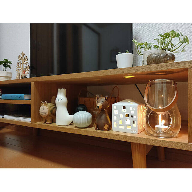 yukiさんはテレビボードの棚にランタンをディスプレイされています。高さ16センチのコンパクトサイズなので、好きなスペースにさりげなく飾れてうれしいですね。一緒に並べられた北欧雑貨とも相性ばっちり。テレビを見るたびにお気に入りの小物たちも眺めて、楽しさが倍増しそうです♪