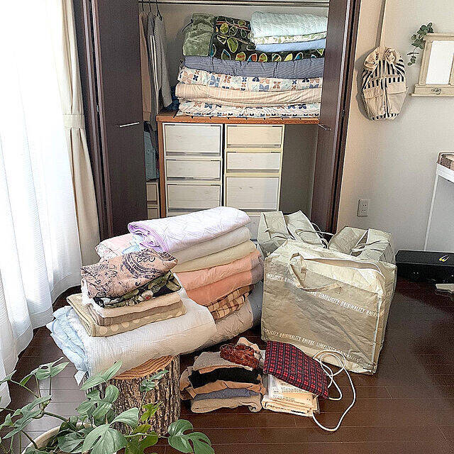お客様用布団の数がバラバラで予備も多すぎたという、kuroさんです。数を把握しながら見直して、2組ずつをセットで残したとのこと。「不要な物に合わせて収納を買うほうがよっぽどもったいない!」と言い聞かせて思い切って処分したそうですよ。