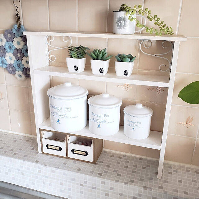 rieさんのキッチンは白色がベースとなっています。そこにとても色鮮やかな水色のホーローキャニスターを置くことで、パッと目を引くアクセントに。カントリースタイルは白や茶色がメインカラーになることが多いので、この色合いは新鮮ですね。rieさんを参考に鮮やかな色味のあるホーローキャニスターを取り入れてみてはいかがでしょうか。
