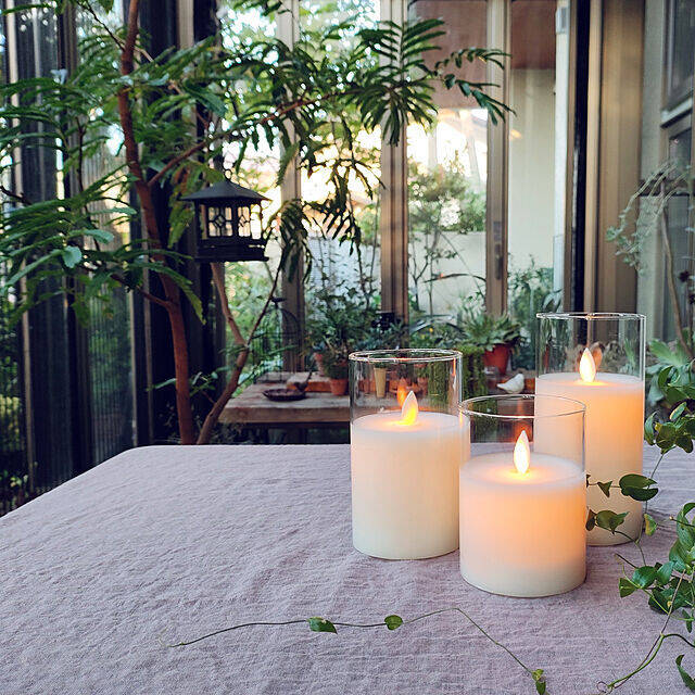 「ガラスだからすごくキレイなの」と、おっしゃるユーザーさんです。「LEDキャンドルライトセット」の本体は、ガラス製。ゆらゆらした光がクリアに美しく見えそうです。本物の蝋とガラスの組み合わせは、高級感もバッチリですね。夜の点灯風景に、癒されます。