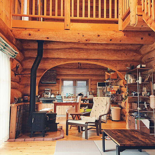 まずは、壁一面や天井まで木材をふんだんに使用したログハウスのおうちをご紹介します。木に囲まれた空間はあたたかみがあり、居心地の良さにリラックスできますね。さっそくユーザーさんの実例を見ていきましょう。