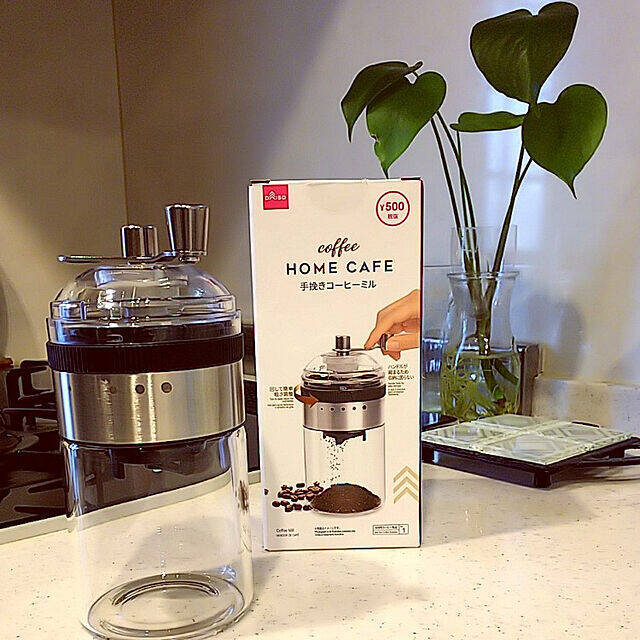 ダイソーのコーヒーミルを使用しているのはakiwaka-roomさん。こちらは500円アイテムですが、コーヒーミルがこの値段で買えるとはコスパの良さにびっくりしてしまいます。スタイリッシュなシンプルデザインで高級感もあり、毎日のコーヒーの時間が楽しみになりそうです。