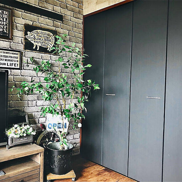 Mieさんは、クローゼットの扉をブラックのマスキングテープでイメチェンしました。マスキングテープはテープ跡が残らず、貼り直しが可能で、賃貸暮らしにはありがたいアイテムなのだそう。ブラックをチョイスしたことで、高級感があり大人っぽい印象になりますね。賃貸の方には特におすすめのDIYです。