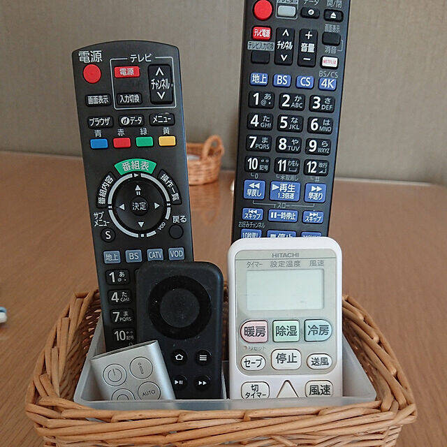 puyohimeさんはナチュラルなかごの中にセリアのケースを入れて、リモコンを収納されていました。仕切りのあるケースなのでリモコンが倒れたりしないのがポイント。かごとケースがぴったりとフイットしており、外からは中のケースは見えないのでナチュラルなインテリアにもなじみそうです。