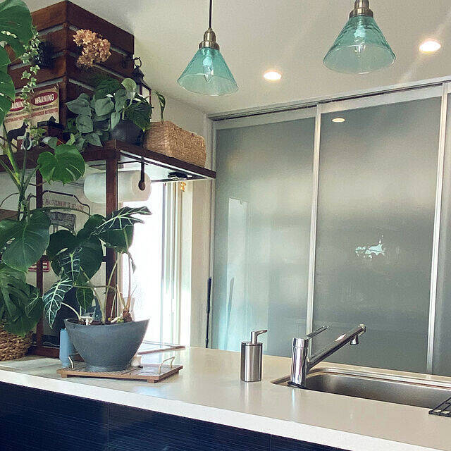 moainanoさんは、プッシュタイプのパルスポンプを愛用されています。小さい力でプッシュできるので、お子さんでも無理なく使えると紹介してくださいました。またステンレス製の本体もシックで美しく、生活感を与えません。見える場所で使っても絵になるので、このようなオープンタイプのキッチンにもぴったりです。