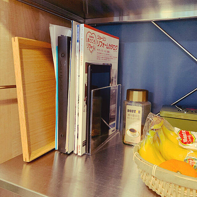 suzuさんは、無印良品週間を利用してスチロール仕切りスタンドを購入されました。キッチンで、カッティングボードの収納に使用されているとのこと。ちょっとしたすき間に立てる収納をすることができて、とってもすっきりして見えますね。